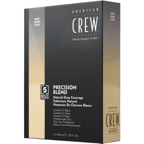 New and Improved American Crew Precision Blend enables Professionals to provide for their clients with natural grey coverage for hair AND beard. The upgraded formulation works in just five minutes and is infused with vitamin B5 for moisturization.