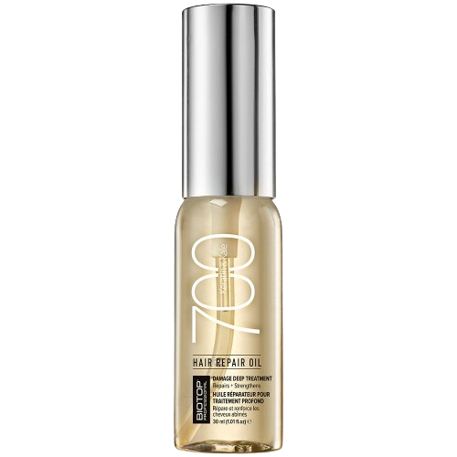 - After shampooing, spray 3+ pumps of 700 Keratin Hair Repair Oil into palms, rubbing them together to warm the oil and activate the ingredients