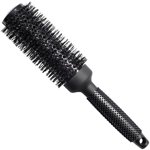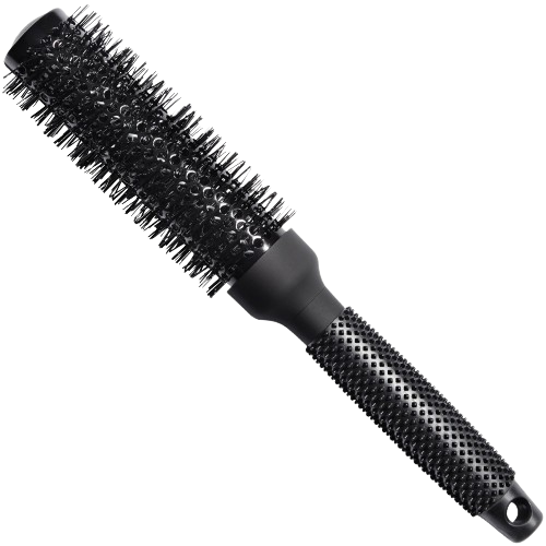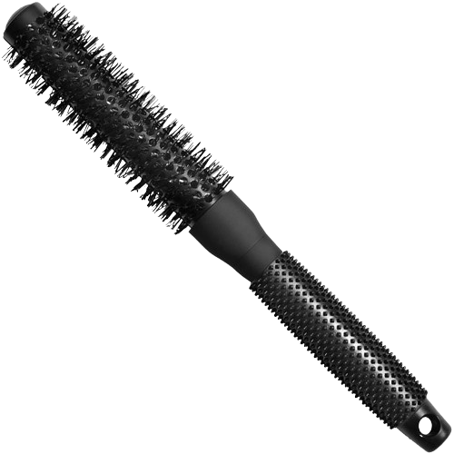 All round brushes feature exclusive non-slip silicone handles. This handle texture is slightly pliable, allowing easier rotation without hand fatigue. The heat-resistant nylon fiber bristles on all brushes are infused with a tourmaline crystal complex which creates negative ions to penetrate and condition the hair. The ions are released when tension and heat are applied helping to maintain healthy hair and repair cuticle damage. When the cuticle is closed, hair color resists fading from UVA/UVB rays.