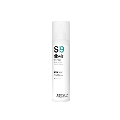 S9 Rikeir is a professional kera-reconstructive shampoo specifically for damaged, colored hair or hair with split ends formulated to gently cleanse damaged hair, restoring its strength and vitality thanks to ultra-gentle natural surfactants that are SLS & SLES free.