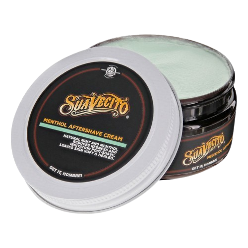 The perfect compliment to Suavecito's shaving cream. Suavecito's Menthol Aftershave Cream will leave your face feeling smooth and looking great. Packed with healthy ingredients such as natural menthol and natural mint. This aftershave works to repair your skin after a shave getting rid of irritation and redness. That tingly feeling you will feel is the natural menthol and mint doing its job. If it wasn’t tingling it wouldn’t be working! These tubs are filled to last. A little goes a long way - saving you money in the process.